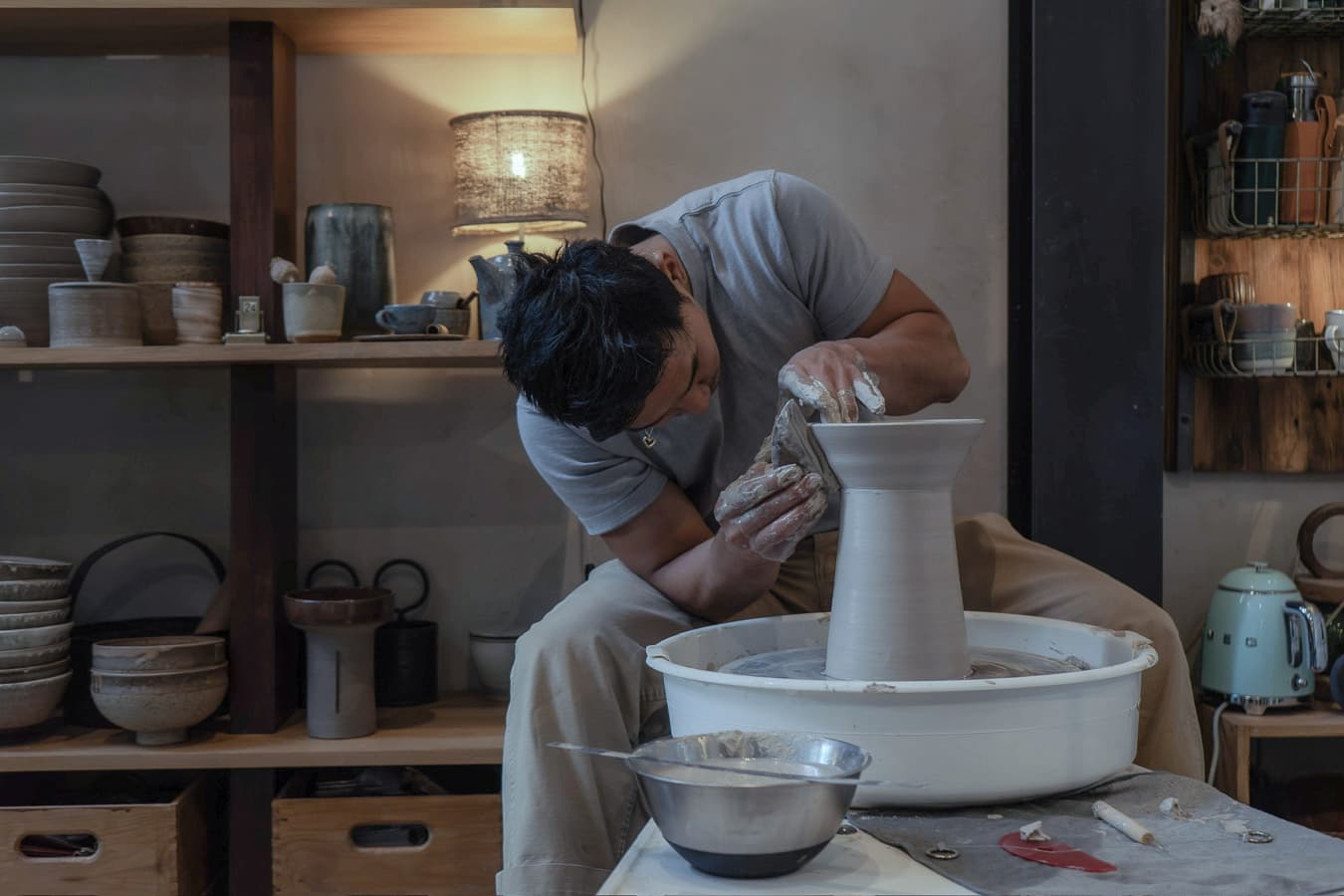L’atelier Slow Potter est avant tout l’espace de création de Chentar, céramiste d’origine thaïlandaise installé à Paris. Son travail met en valeur la terre brute, dans un dialogue subtil entre influences asiatiques et sensibilité contemporaine.