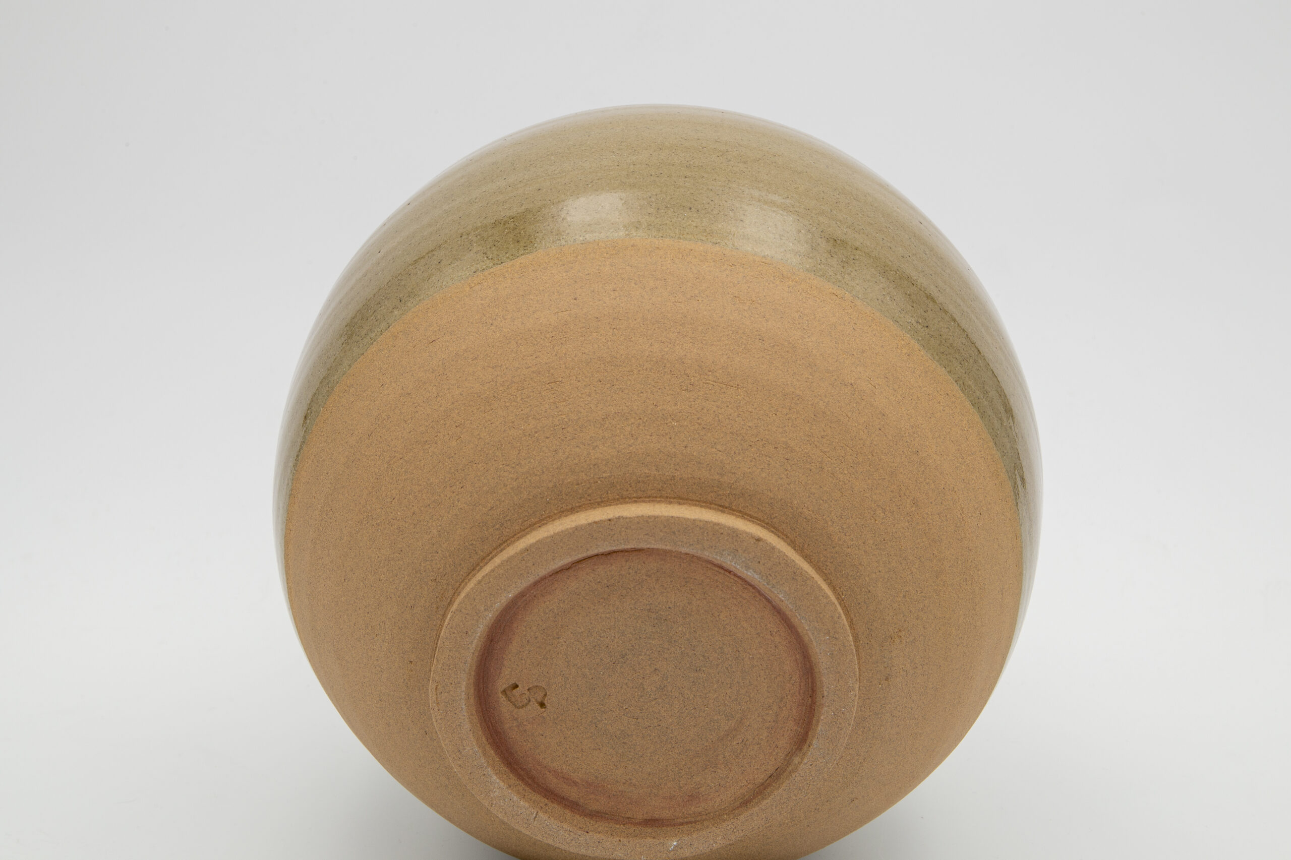Grès de Treigny. L’intérieur et l’extérieur sont recouverts d’un émail satiné beige grive créé par Chentar. Le pied est laissé en terre brute.